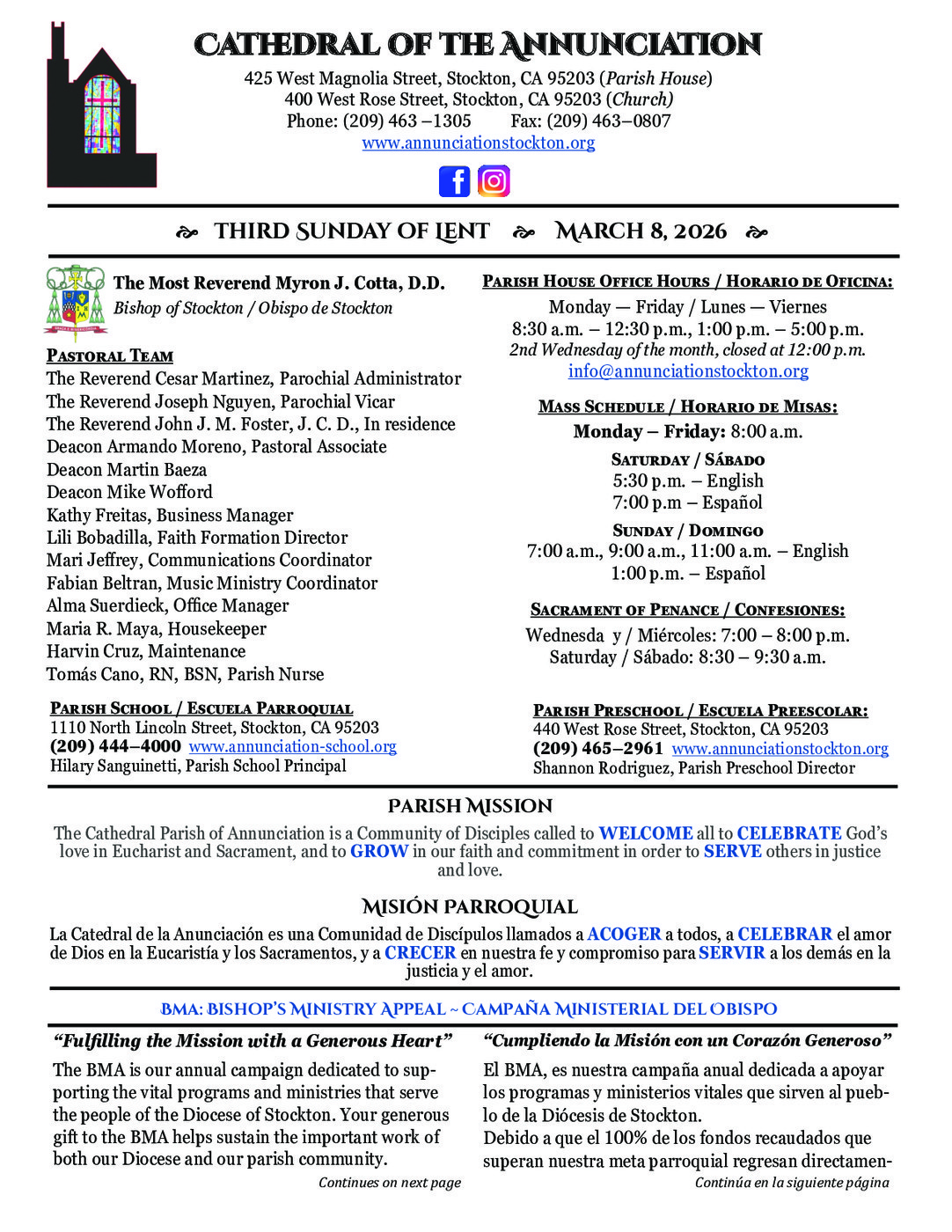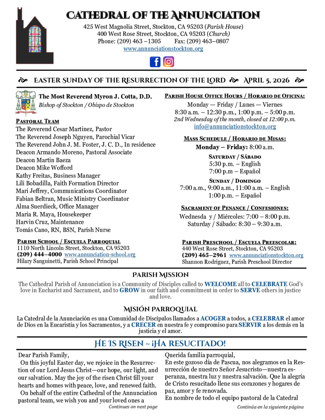 Bishop's Monthly Reflections ~ Reflexión Mensual del Obispo
